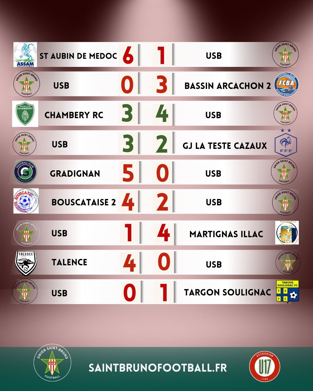 Bilan U17 à la trêve :