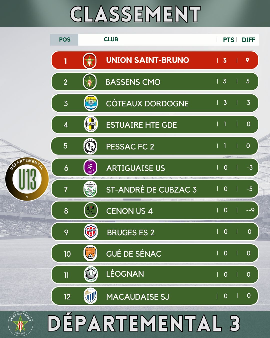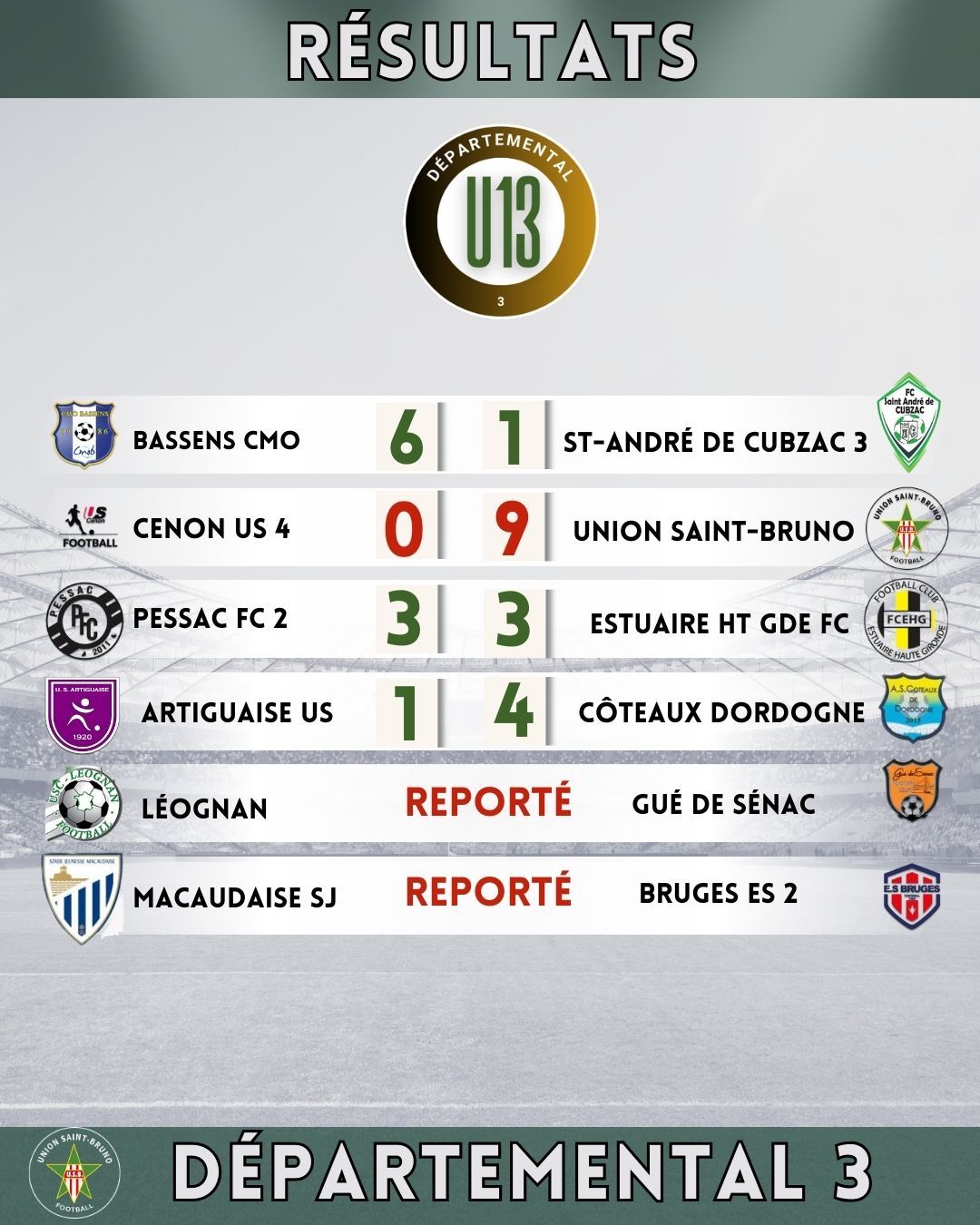 Retour sur les terrains ce samedi 10 janvier pour nos U13 A après la trêve hivernale avec un court déplacement à Cenon pour la première journée du championnat Départemental 3.