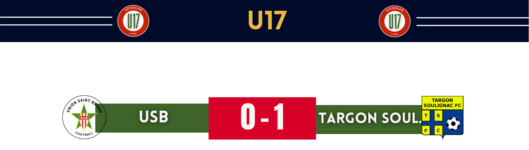 95ᵉ minute : corner pour Targon Soulignac, le frappeur envoie son ballon au deuxième poteau, notre gardien est battu (0-1).